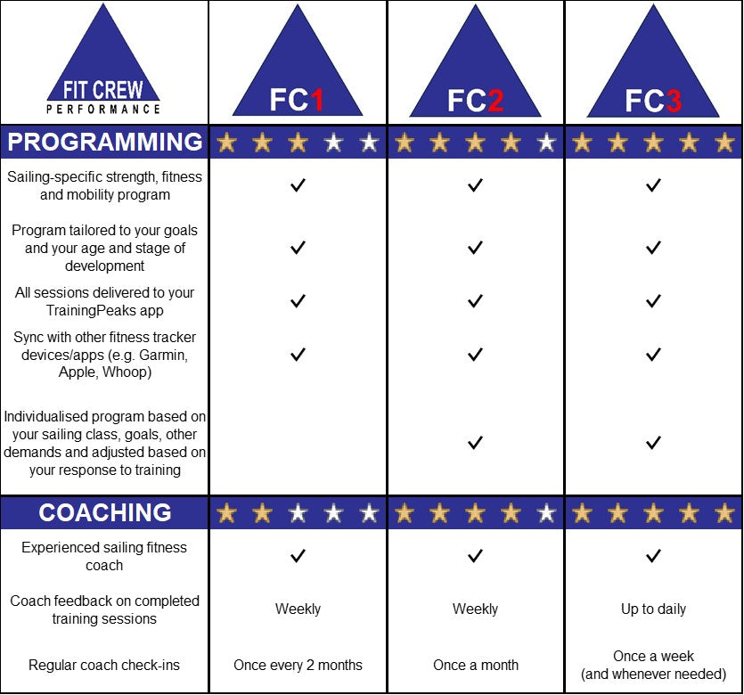 All programs include endurance, strength and mobility training sessions designed to help improve your on-water performance and reduce injury risk. All sessions will be delivered to your own TrainingPeaks app and can be completed anywhere, anytime. Your sailing fitness coach will track your training performance, provide feedback and help you to develop optimal athlete habits.